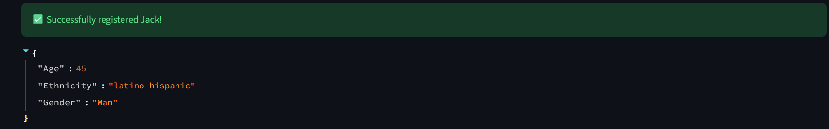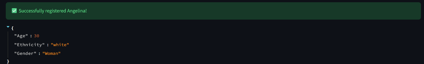 INSERT INTO dc_facialmatching.FacialData (SSN, Name, Age, Gender, Ethnicity, FaceVector) VALUES (?, ?, ?, ?, ?, TO_VECTOR(?))5. Para realizar uma correspondência facial, você deve fazer uma busca vetorial: