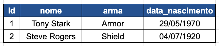 E na representação abaixo, estamos definindo o nome de um cliente na "tabela" hero