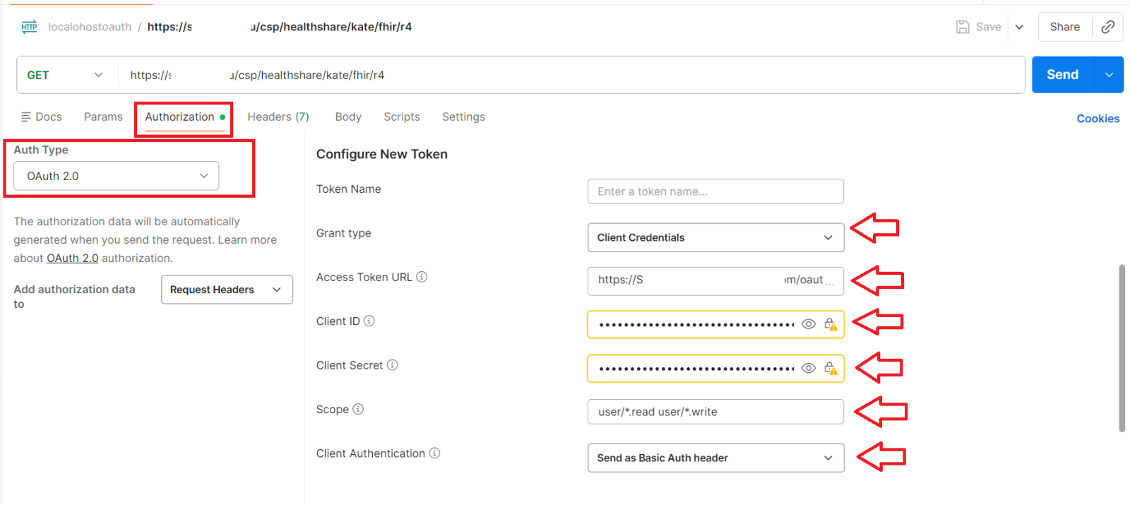 | Client Authentication | Enviar como cabeçalho Basic Auth |