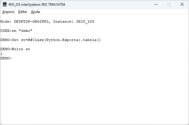 Pronto. Temos nossa tabela criada e populada com 100 registros. Agora precisamos ver o python. Veja o link da documentação do IRIS a seguir: https://docs.intersystems.com/irislatest/csp/docbook/DocBook.UI.Page.cls?KEY=AFL_epython