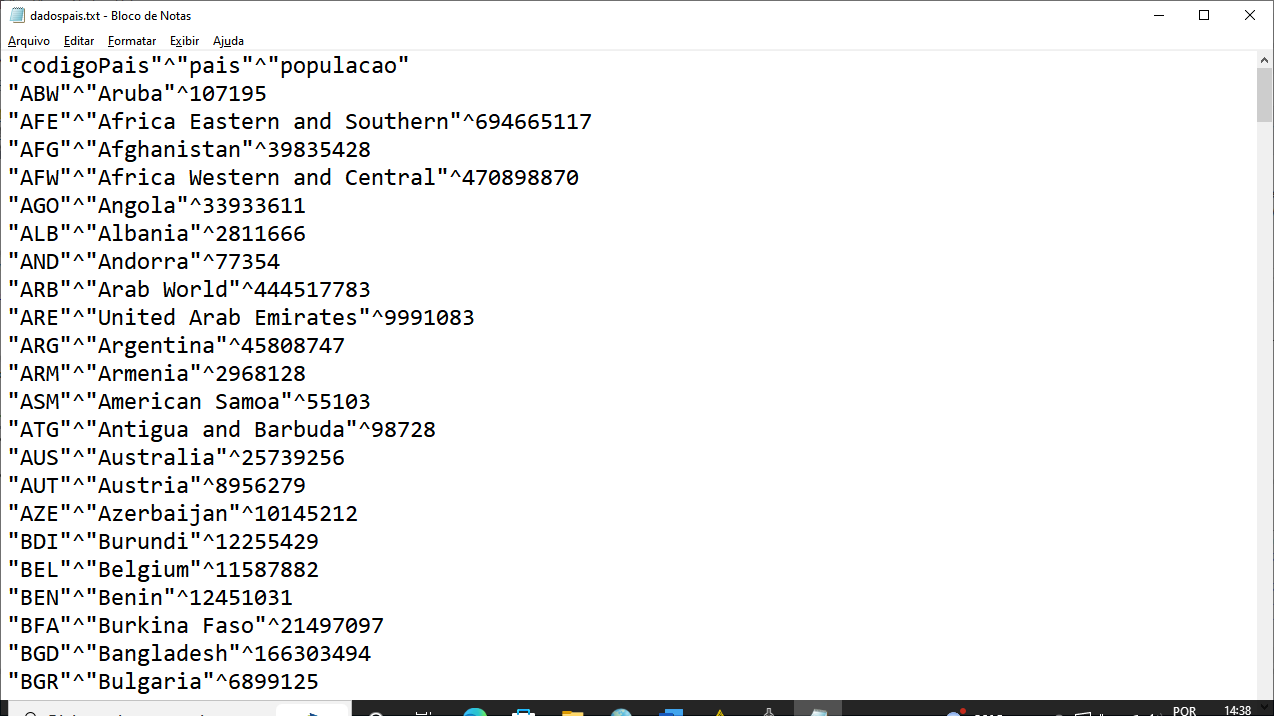 Fig. 16 – Arquivo com os dados retornados da Query executada