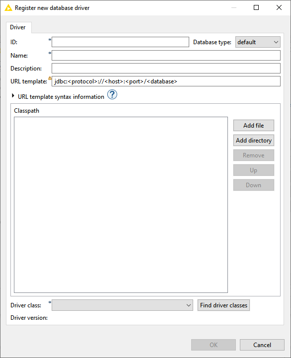 ID: Um identificador único no KNIME para o driver;
