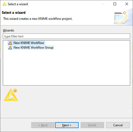 Abra um novo Workflow em File->New->New KNIME Workflow: