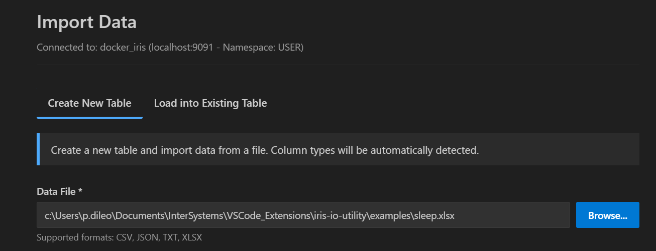 A extensão apresenta uma camada de inferência inteligente que analisa o arquivo de entrada e sugere automaticamente os formatos de dados ideais para a tabela IRIS, fornecendo modelagem de dados assistida e guiada.
