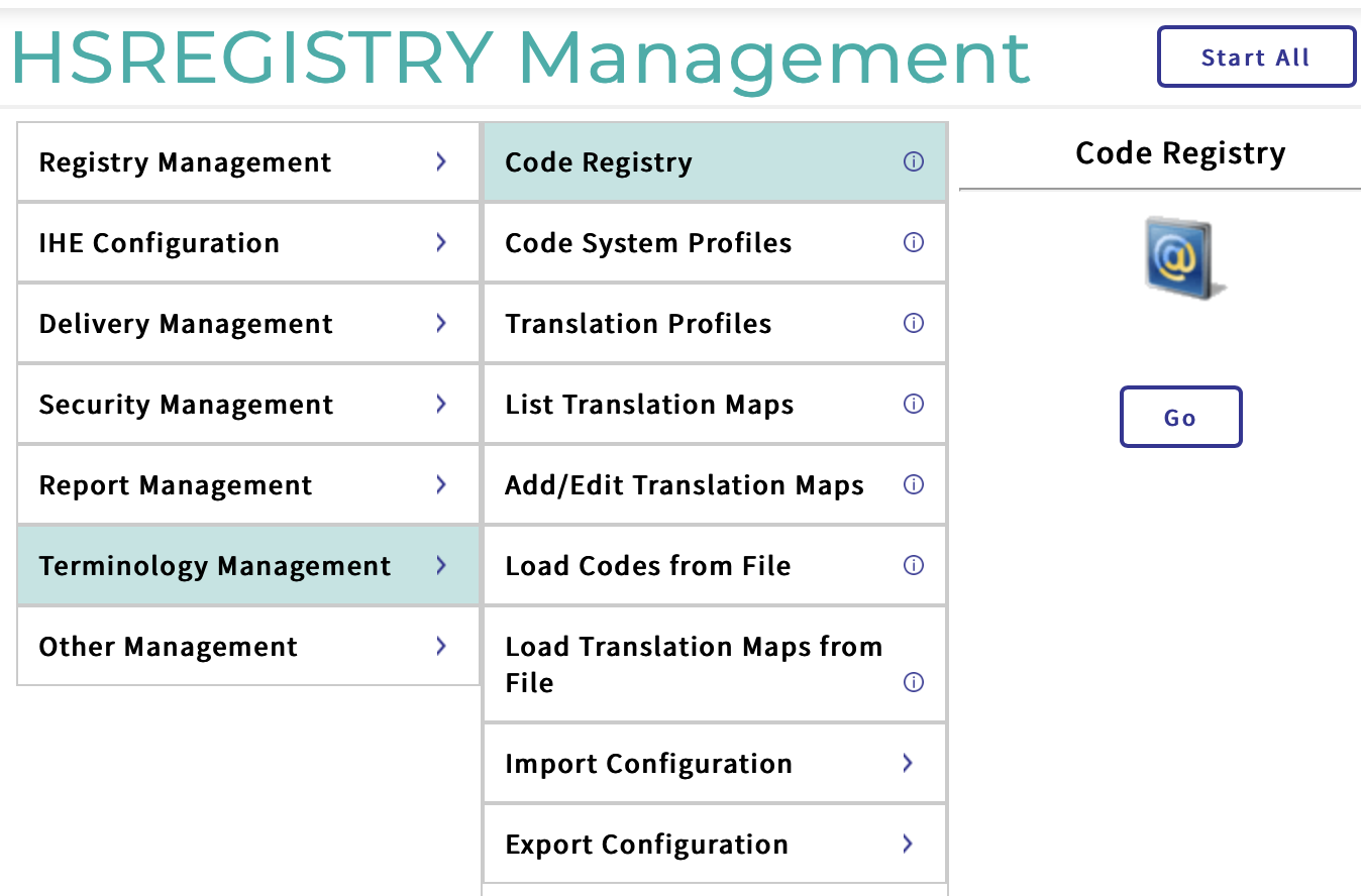 Para normalizarmos estas informações, devemos primeiramente registrar as codificações (Coding Systems) no Gerenciamento de Terminologia do HealthShare no REGISTRY: