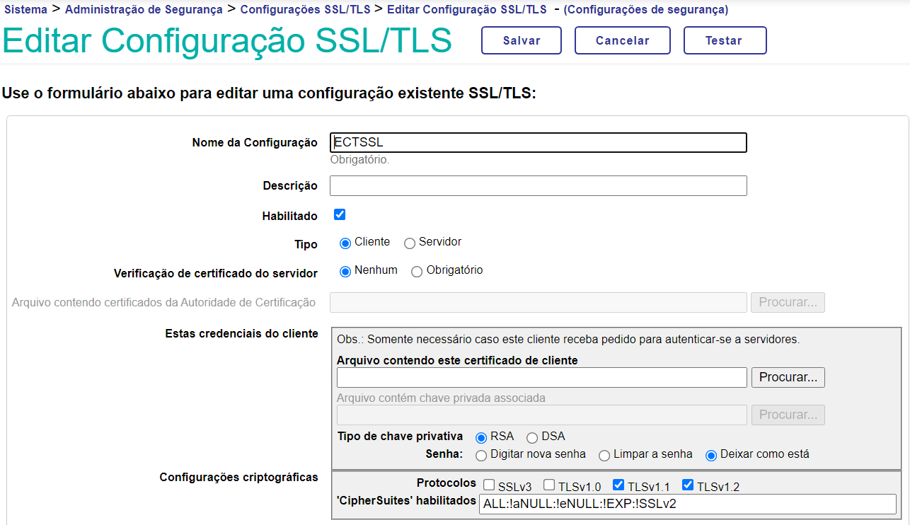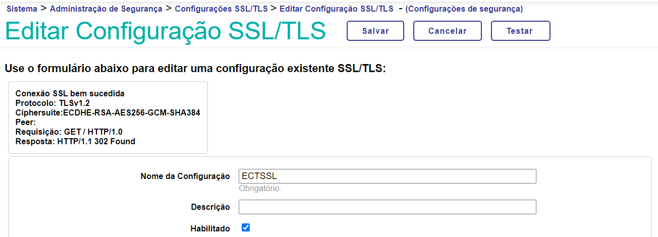 1 - Você precisa criar uma configuração SSL em Sistema > Administração de Segurança > Configurações SSL/TLS > Editar Configuração SSL/TLS