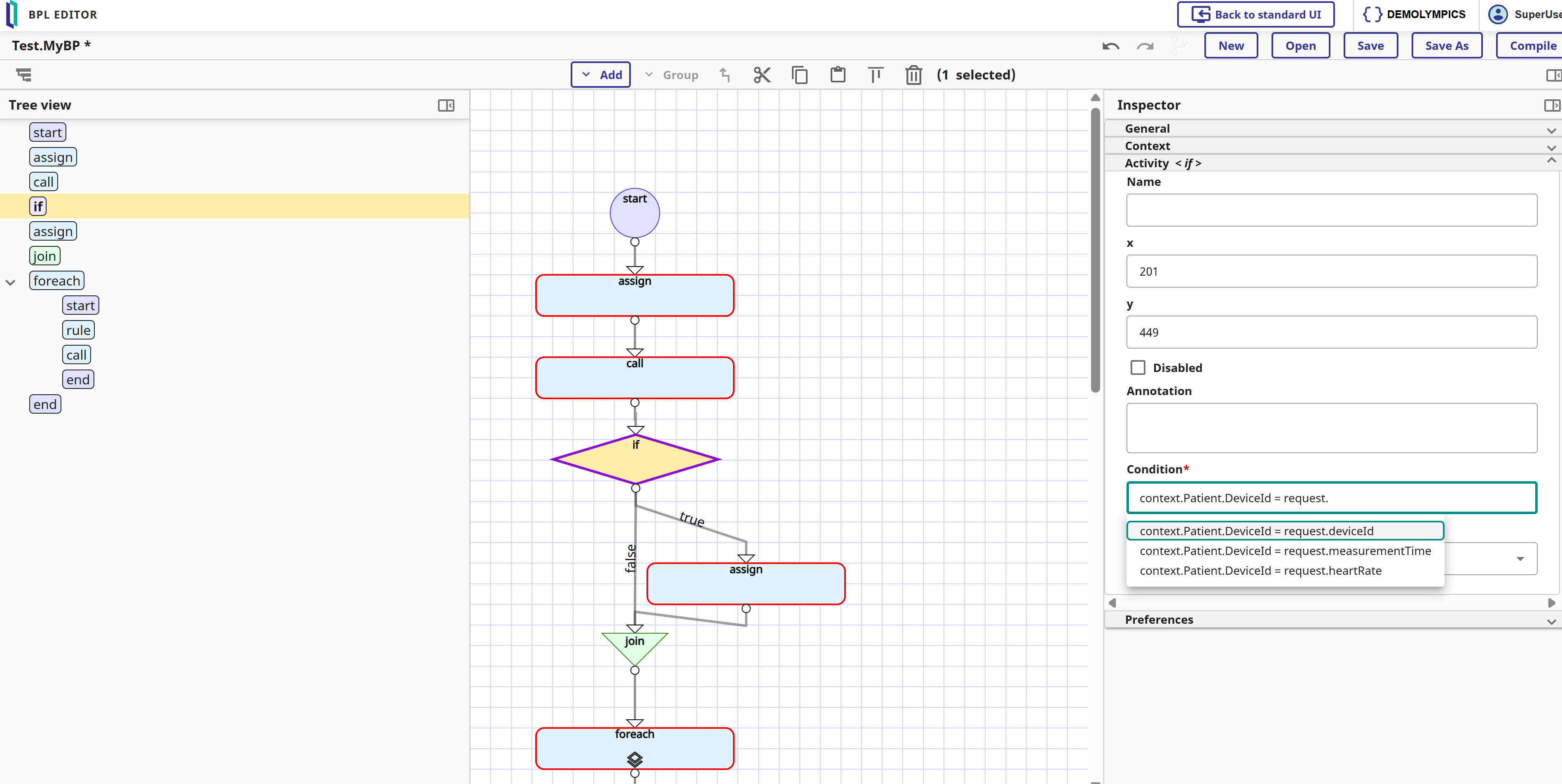 • A capacidade de auto-complete ao editar ações Assign e Conditions, veja no lado direito acima.